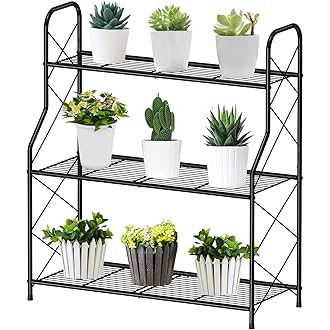 Amazon Com Xiofio 5 Tier Plant Stand For Indoor Outdoor Large Multiple Flower Pot Holder Rack Tall Plant Stand Hanging Plant Stand Adjustable Plant Stand Suitable For Bedroom Living Room Balcony Garden Black Patio